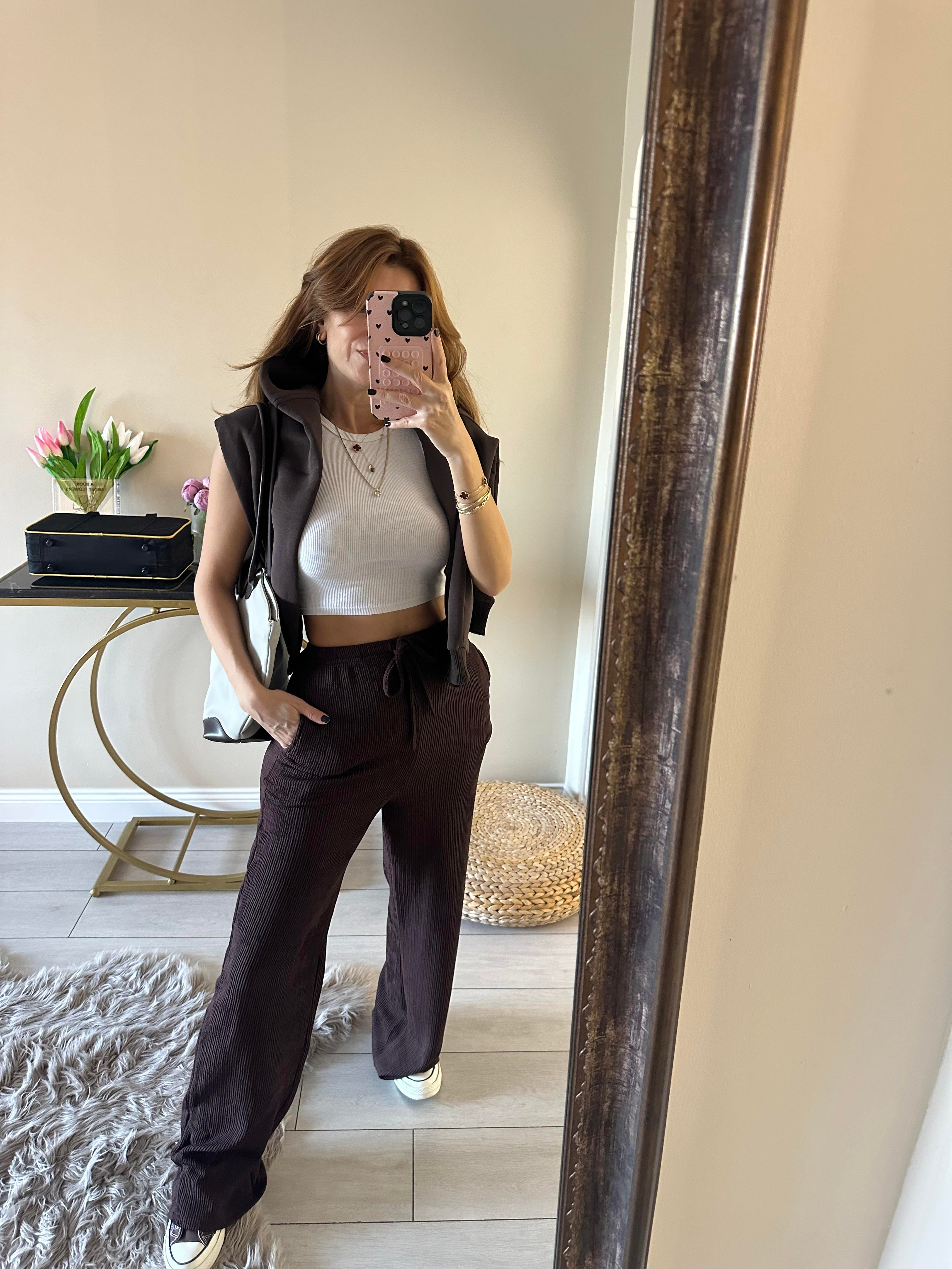 Acı Kahve Meloni Bol Paça Pantolon (26488)