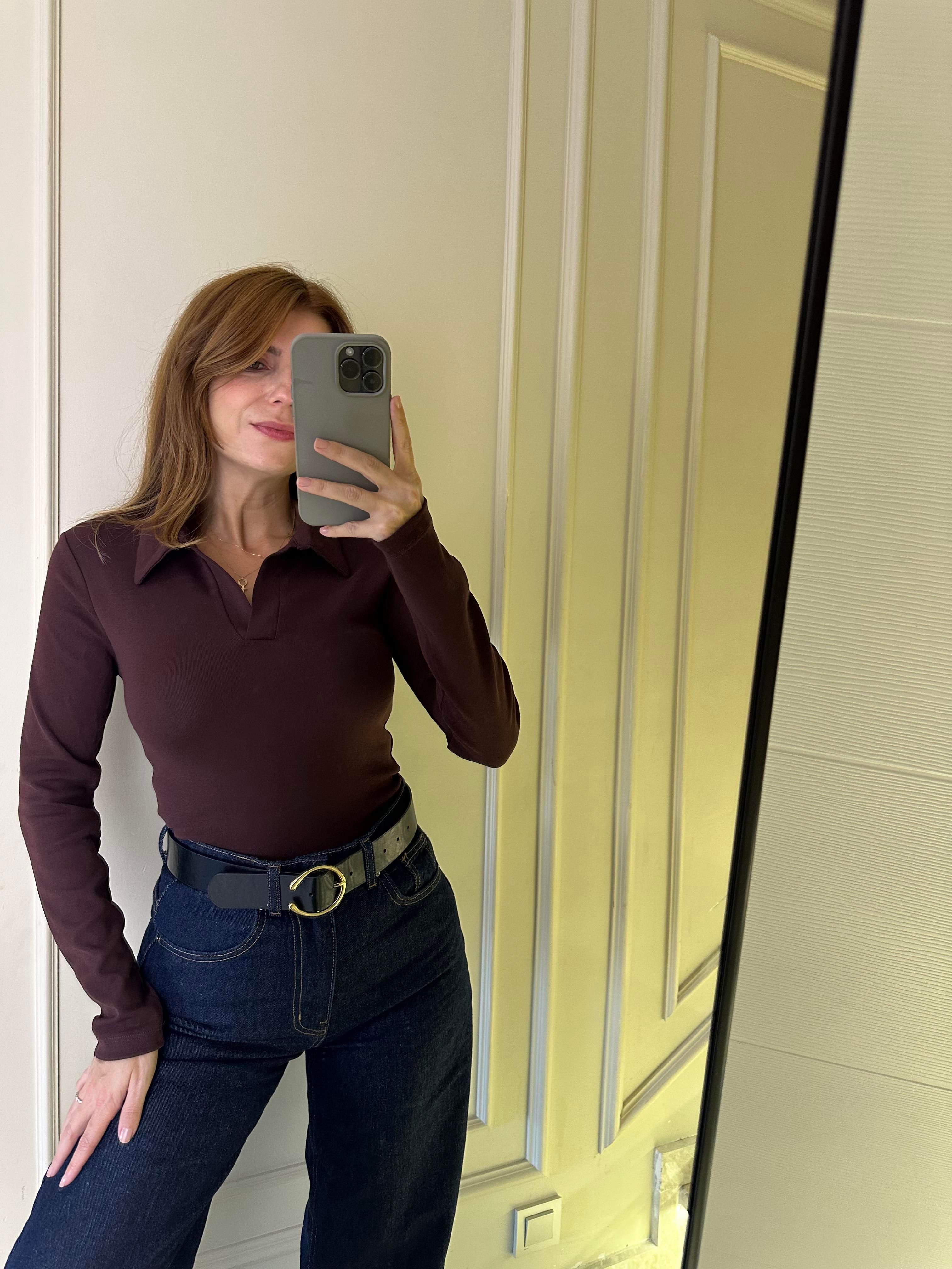 Uzun Kollu BluzAcı Kahve Polo Yaka Uzun Kol Bluz