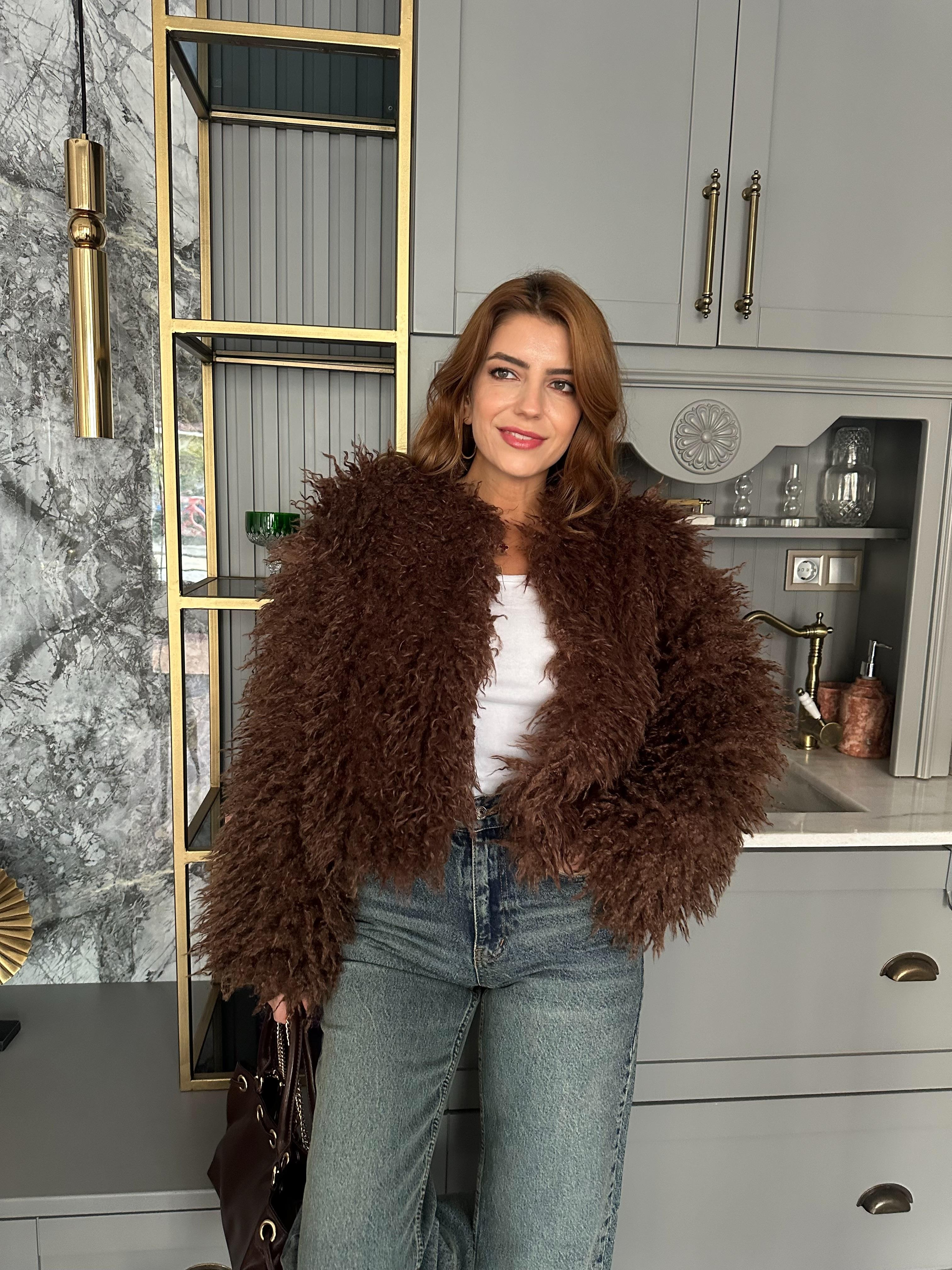 CeketAcı Kahve Püsküllü Kürk Ceket