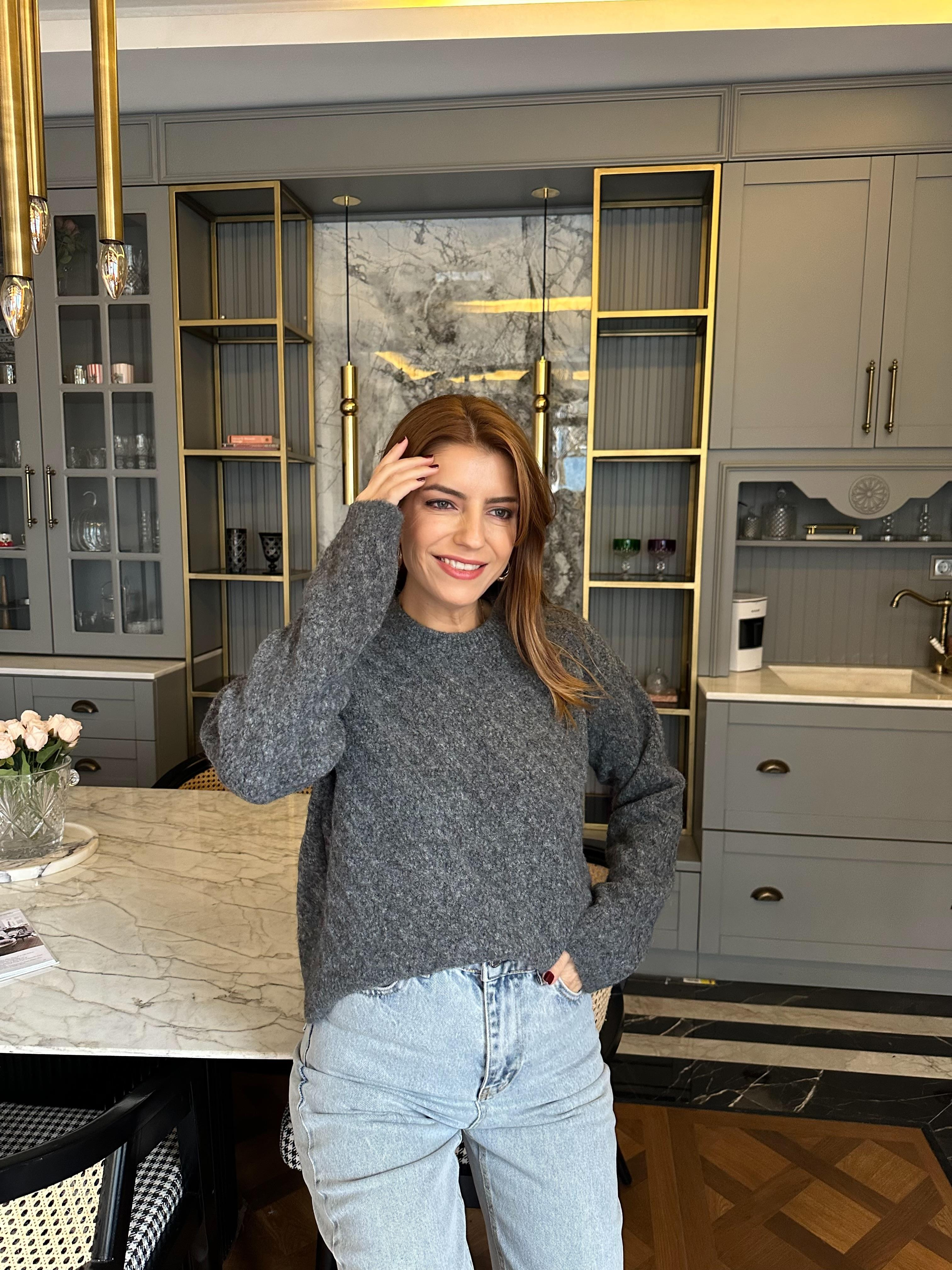 Antrasit Desenli Yumoş Triko Kazak (26319)