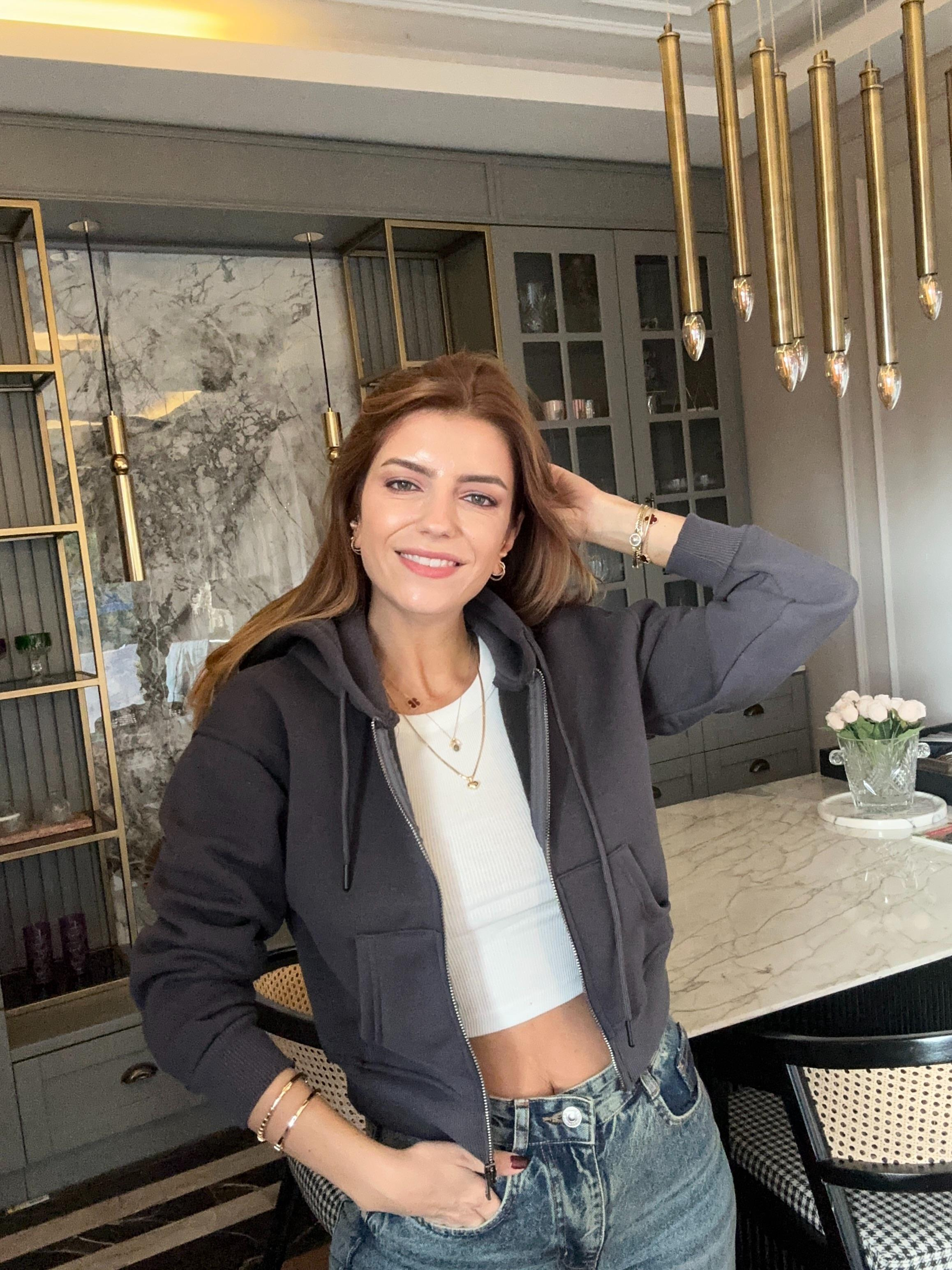 HırkaAntrasit Fermuarlı Crop Hırka