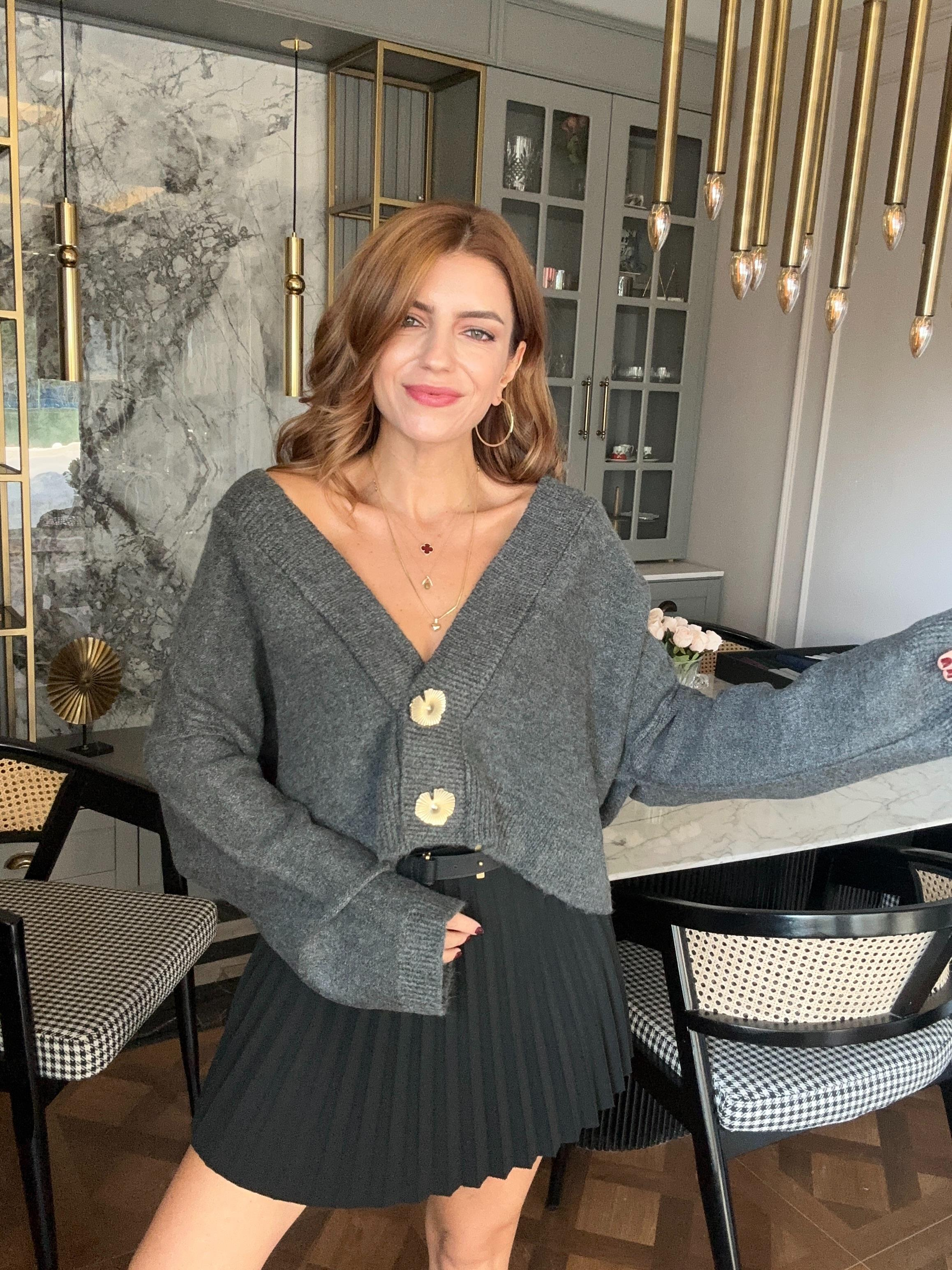 HırkaAntrasit Metal Aksesuar Düğmeli Triko Hırka