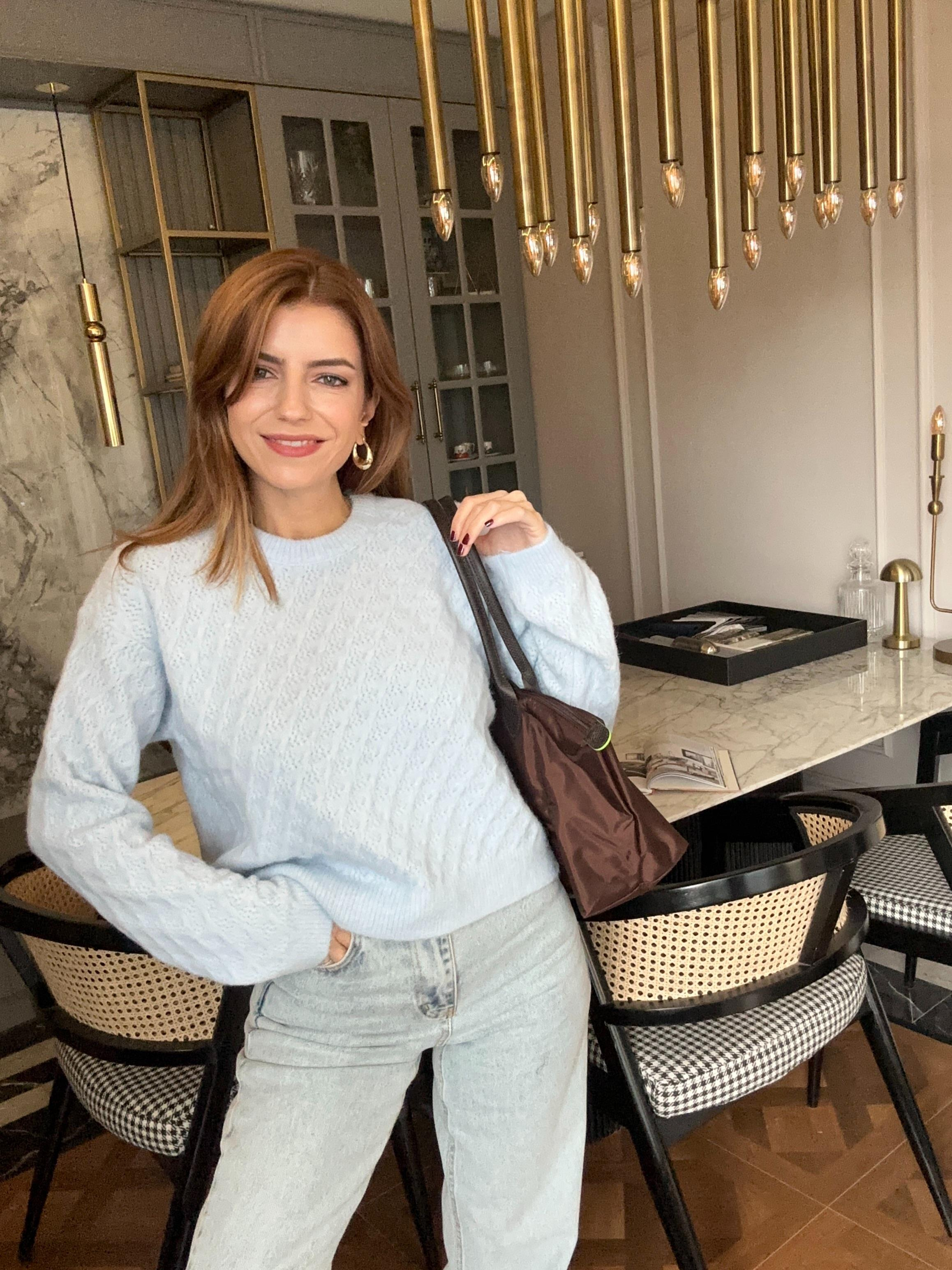 KazakBebe Mavi Desenli Yumoş Triko Kazak