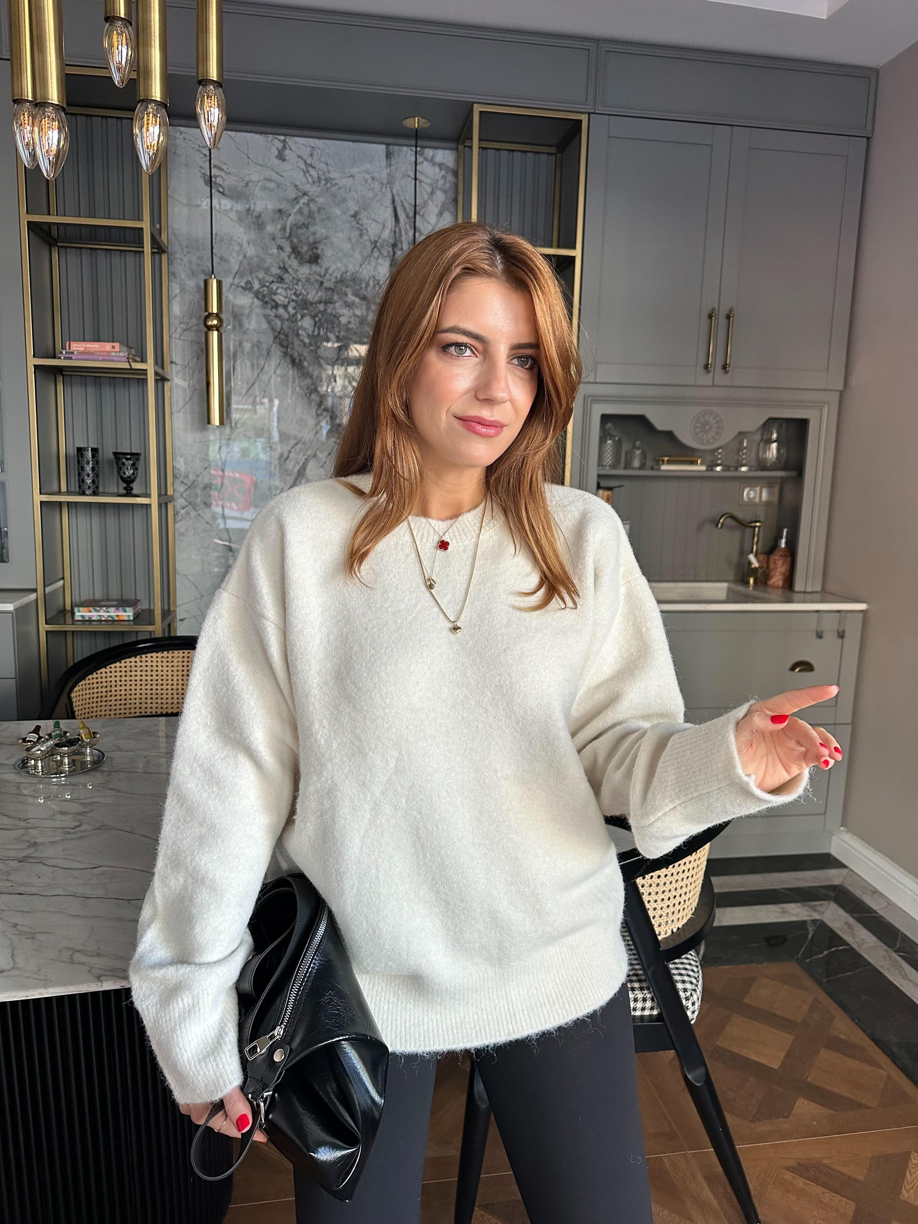 Beyaz Bisiklet Yaka Yumoş Triko Kazak (26536)