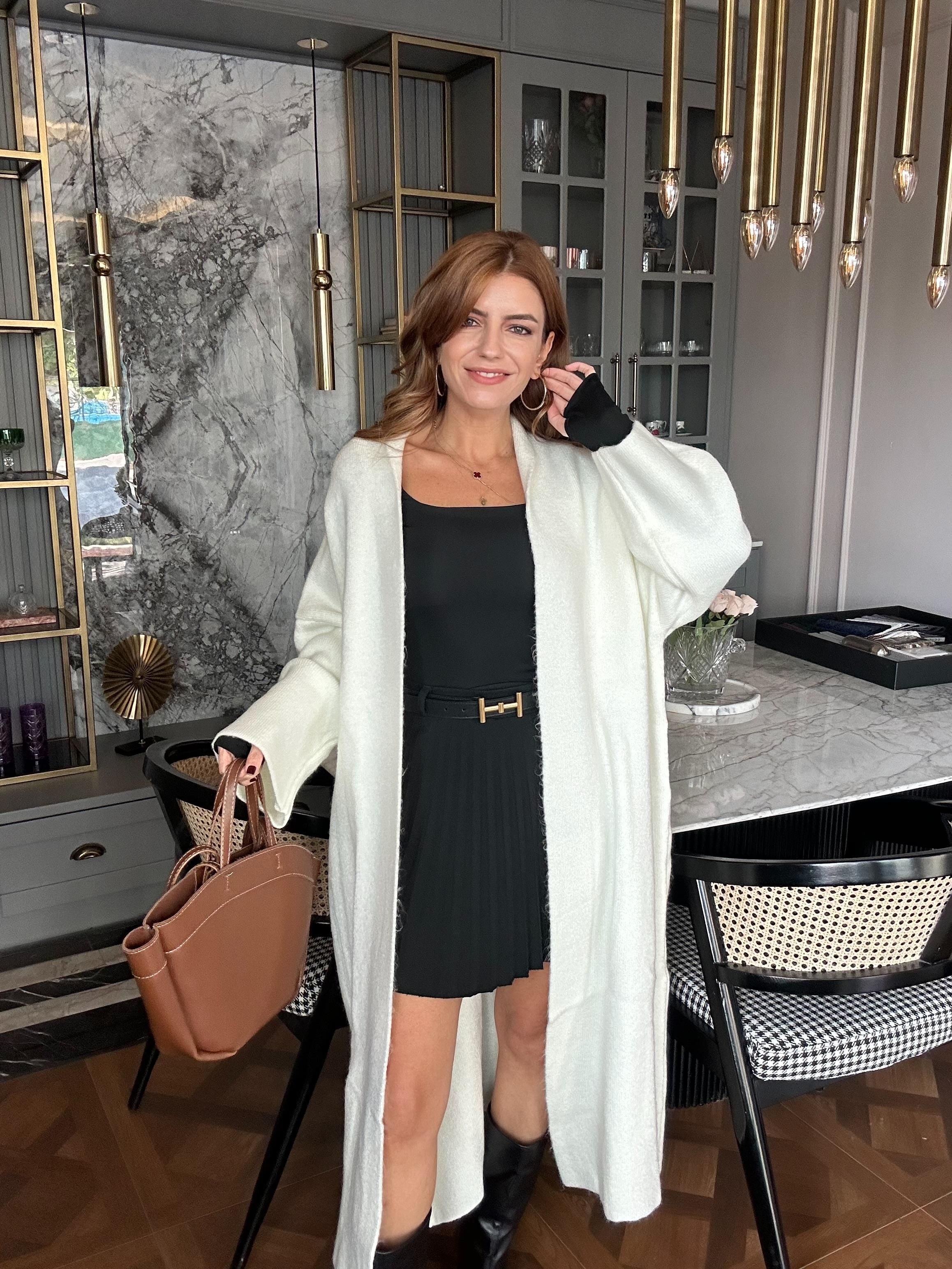 HırkaEkru Uzun Kalın Triko Hırka