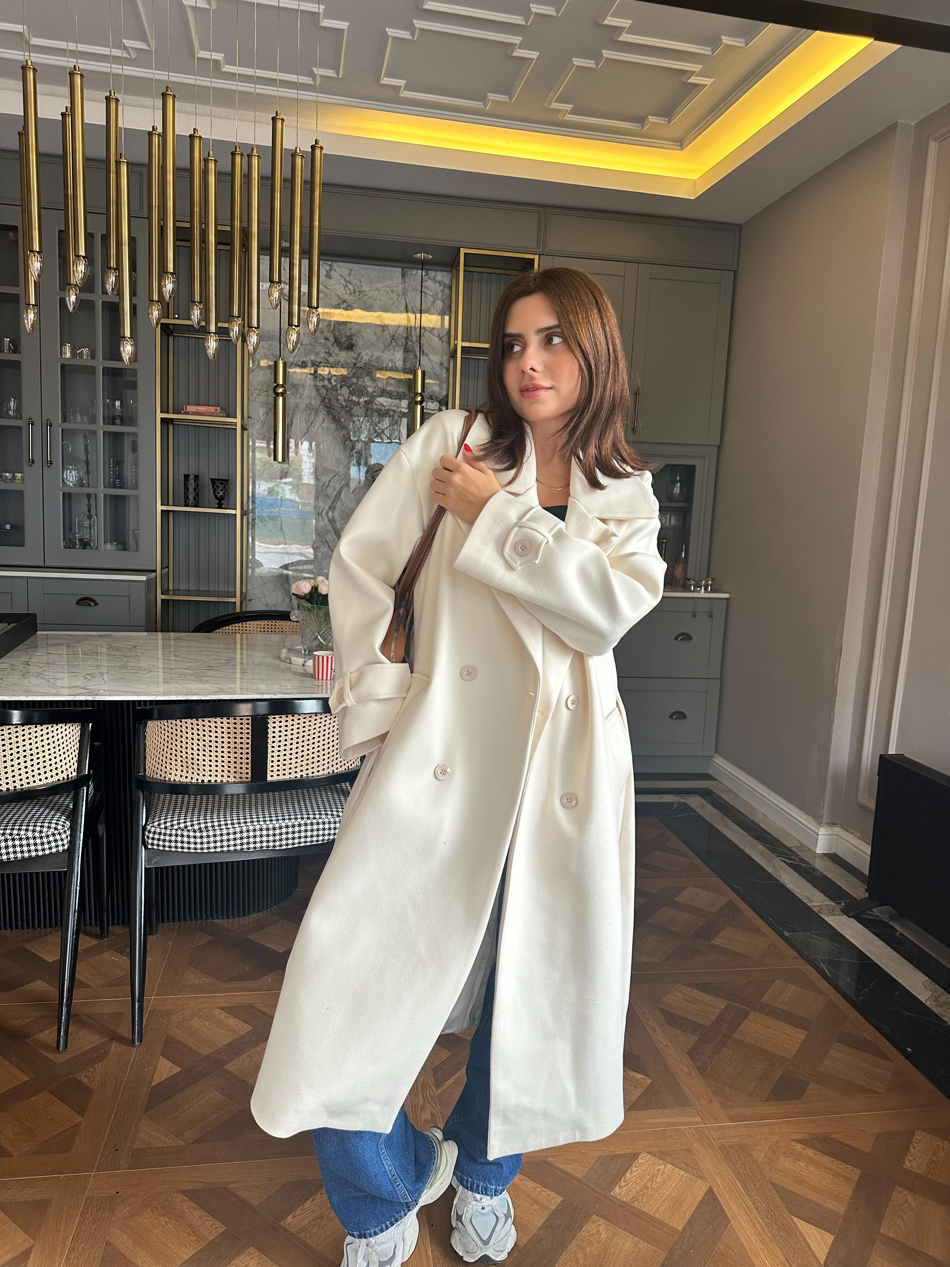 DIŞ GİYİMEkru Uzun Kaşe Kaban