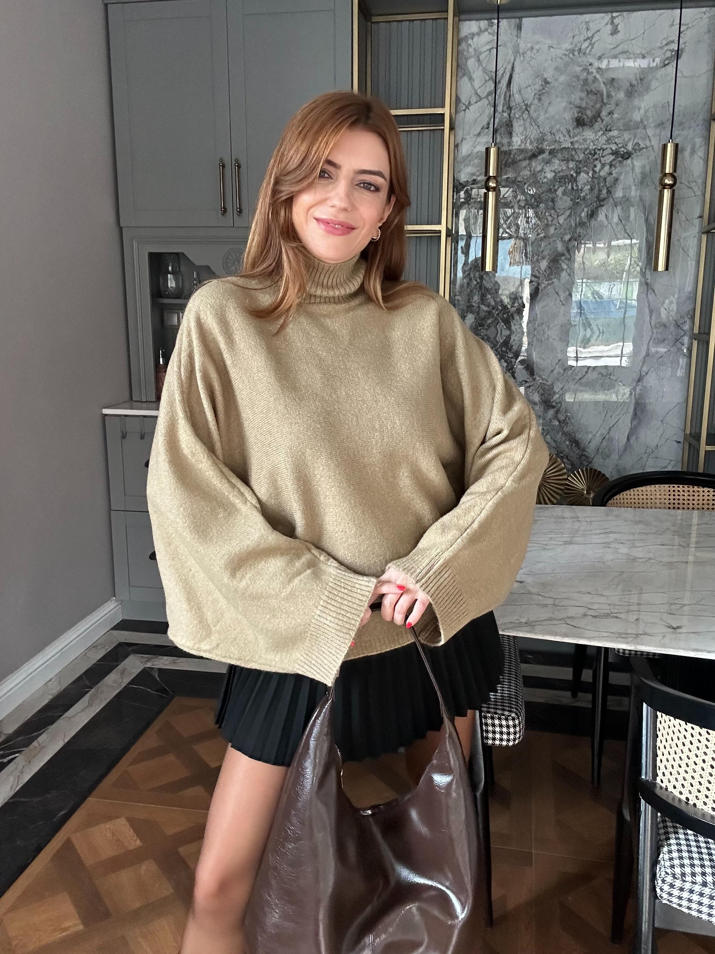 Haki Dik Yaka Yarasa Kol Kazak (26499)