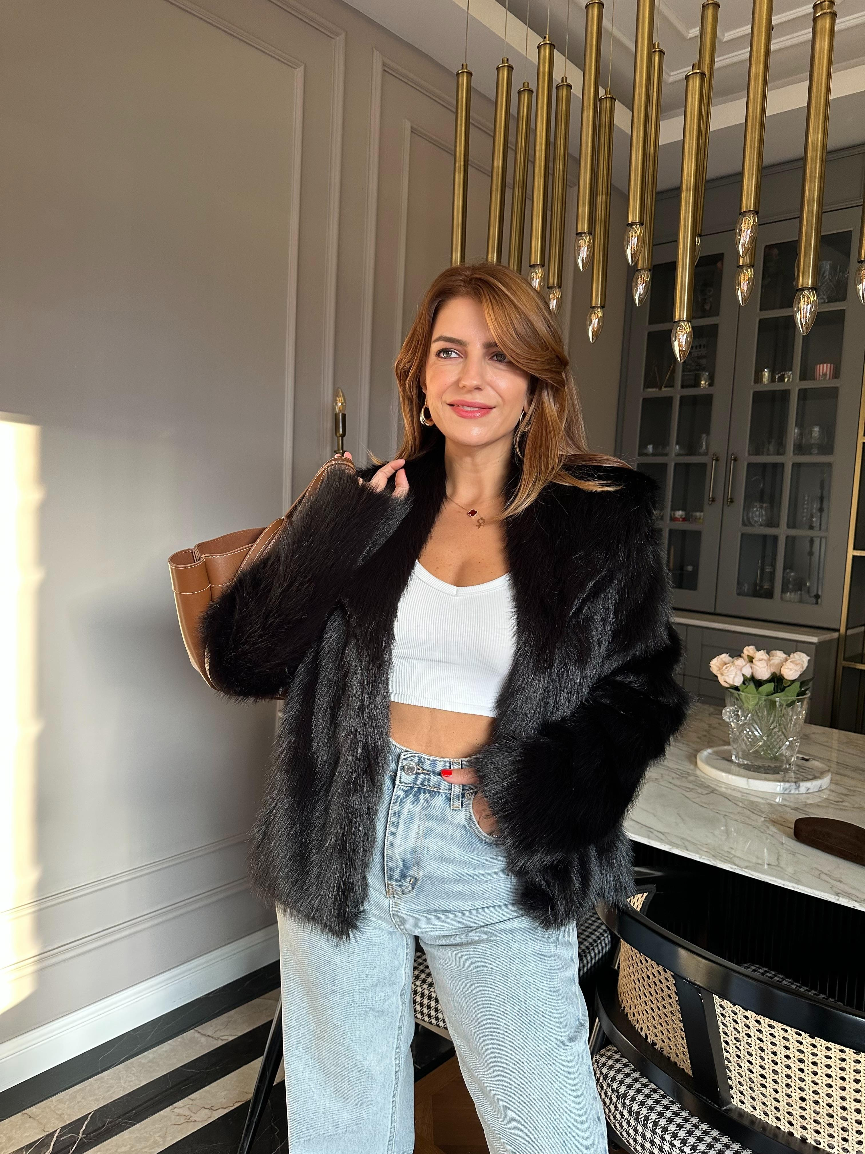 MontSiyah Şal Yaka Suni Kürk Mont